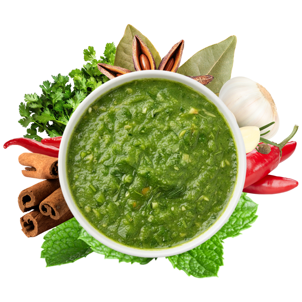 A harmonious mix of coriander, mint, chilli, garlic, ginger and aromatic kitchen spices — delivering a burst of fresh & authentic flavour in every bite.